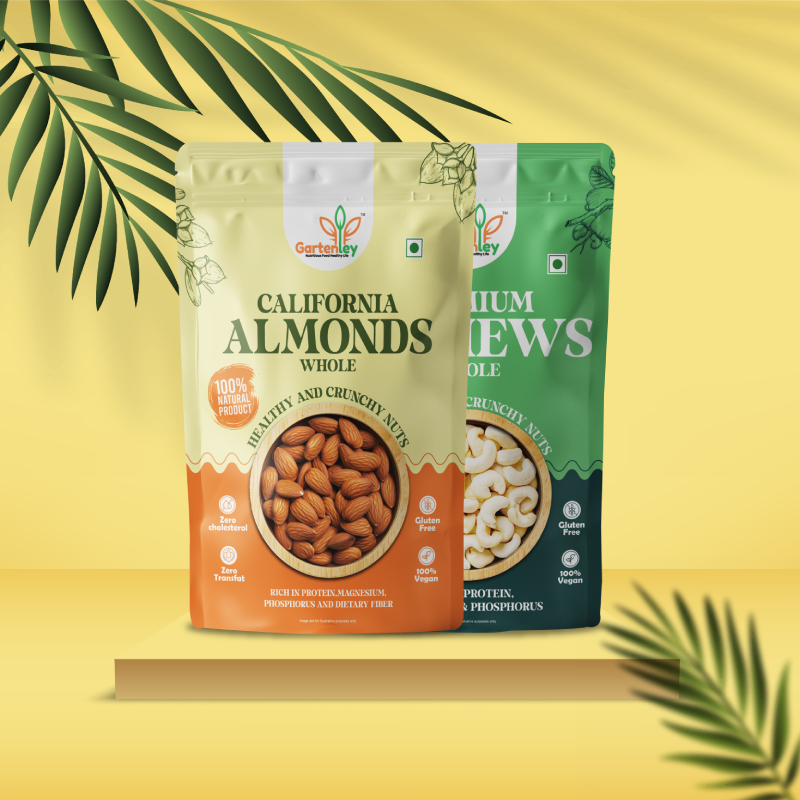 • The Classic Crunch & Cream Duo: A premium blend of crisp California Almonds and buttery Cashews.